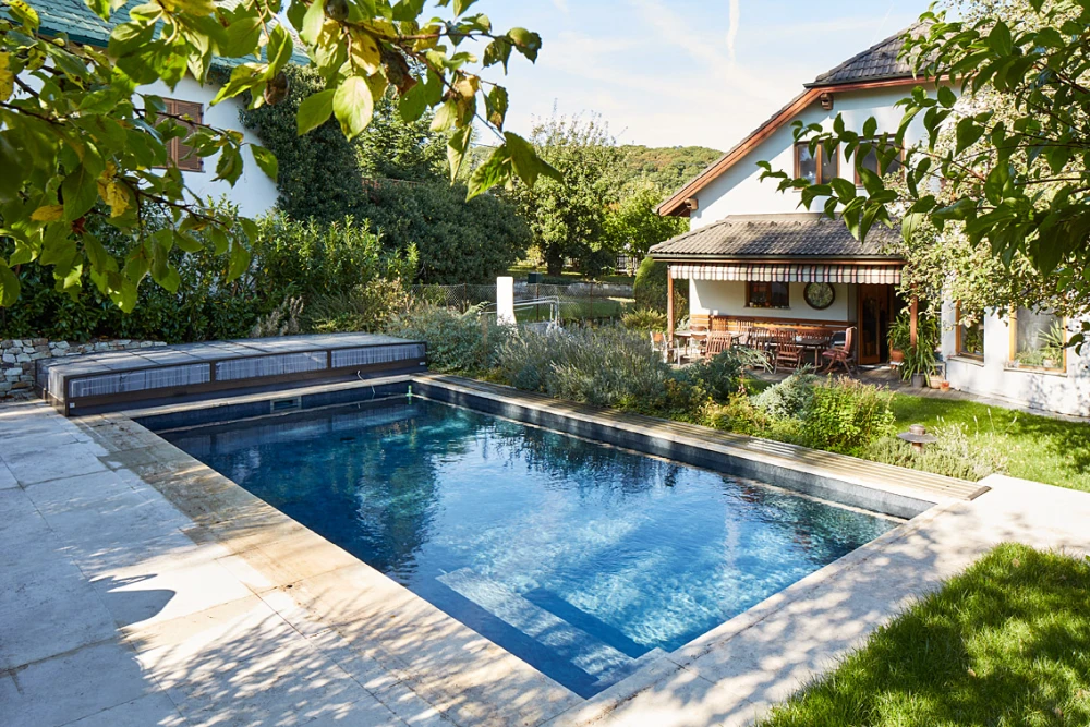 Wenn Sie ein Schwimmbecken kaufen möchten, sind Sie bei uns genau richtig. Wir bieten Ihnen eingebaute Pools in verschiedenen Größen und Optiken und selbstverständlich auch die dazugehörende Technik wie Filter, Wasserdesinfektion, Beleuchtung, Reinigung und Erwärmung. Bei Bedarf können Sie auch aus unseren vielen Poolabdeckungen wählen – ob flach, mittel oder hoch, mit Lamellen, Rollschutz oder Coverseal.
